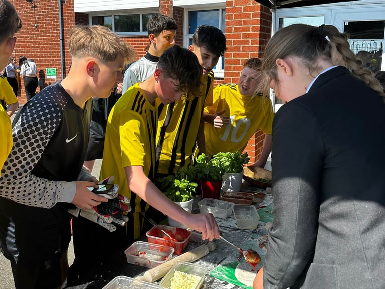 Adaptation: High achievers can experiment with advanced pizza-making techniques and manage the rehearsal process. SEND students can practise specific steps in the pizza-making process with support and guidance.